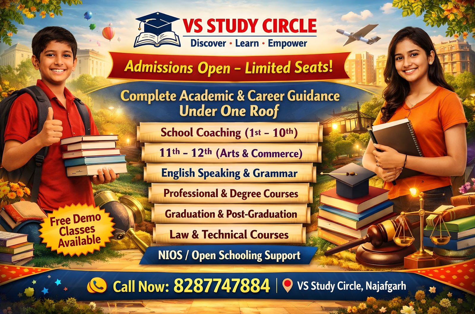 At VS Study Circle, we believe that every student deserves the right guidance, clarity, and confidence to succeed academically. Our institute focuses on conceptual understanding, exam preparation, skill development, and academic progression.